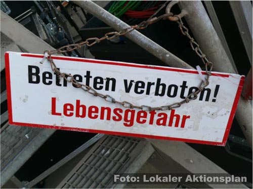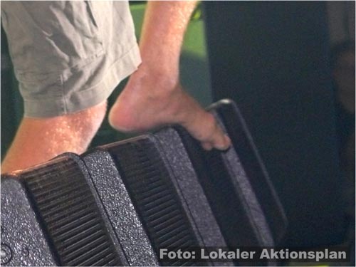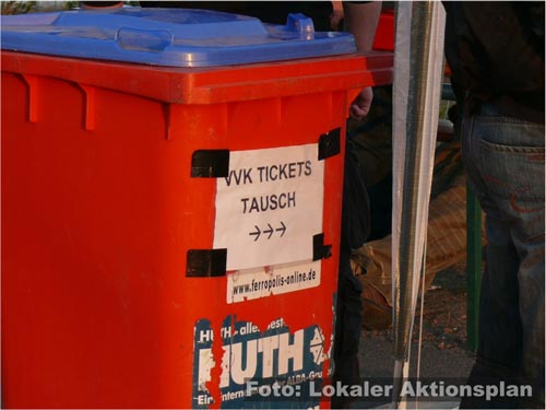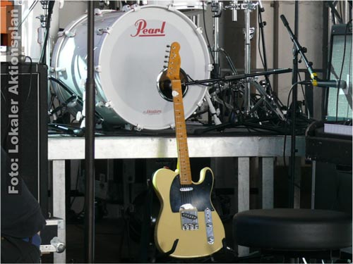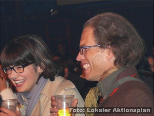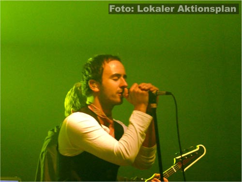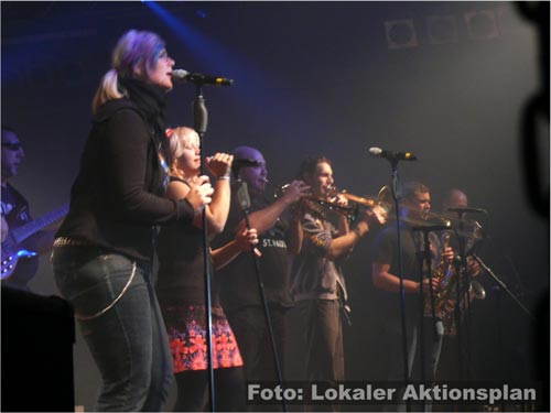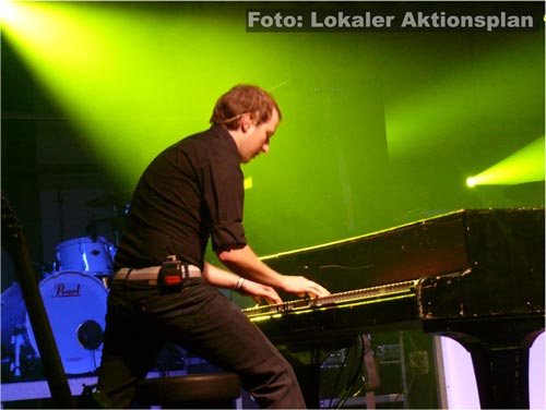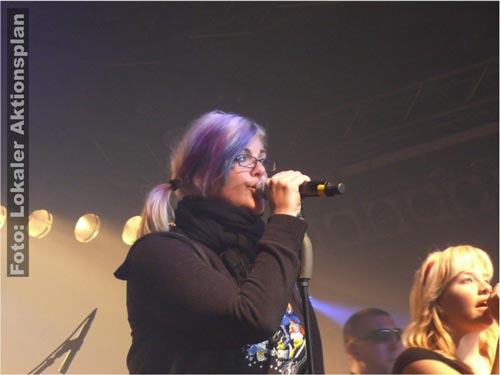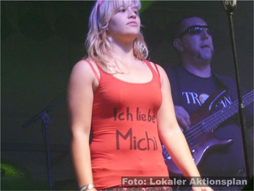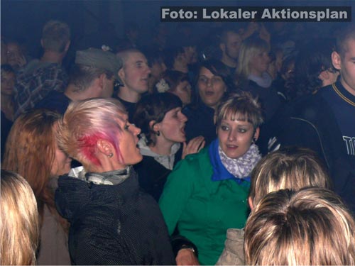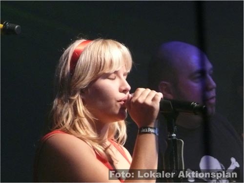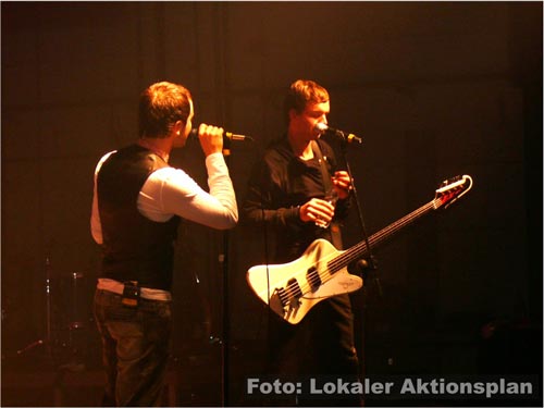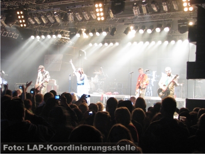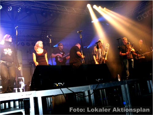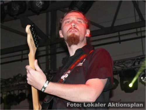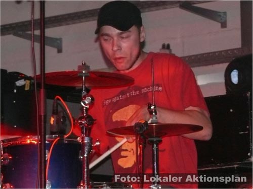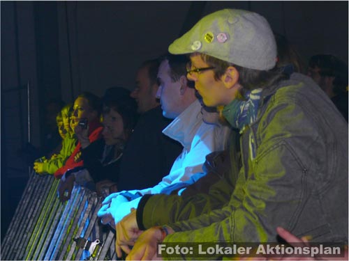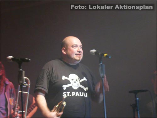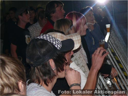 „Wir wollen heute lauter sein als alle Nazis dieser Welt zusammen“Rock gegen Rechts-Festival in der Baggerstadt Ferropolis Gleich im Dutzend nahmen die Anhänger der Dessauer Hardcore- und Metalcombo „Blonk“ (mehr dazu hier...) die strapaziöse Anreise mit dem Fahrrad auf sich. Diese Konditionsübung stimmte dann auch gut auf die Verausgabung ein, mit der die vier jungen Herren aus der Brachialabteilung ihren Auftritt ablieferten. Wer die Jungs im Gründungsjahr 2004 gesehen hat kommt nicht umhin, dem Projekt ein erhebliche Entwicklung zu attestieren. Die einstige Garagenband hat sich spieltechnisch gemausert und ihren recht eigenen Sound kreiert, der im Internet schon einmal als „Screamo“ durchgeht. An der Angst vor den oftmals recht lautstarken und undefinierbaren Geräuschen von der Bühne kann es wohl nicht gelegen haben, dass zur Blonk-Attacke noch recht wenige Leute im Saal waren. Wohl schon eher an der recht uncoolen Zeit, zur der die Band den Reigen eröffnete. Aber vielleicht verspäteten sich ja einige Freunde und Freundinnen aus dem Umfeld, weil sie eine Panne mit dem Drahtesel hatten oder noch schlimmer: Kein Licht am Fahrrad. ![]() Blonk in action ![]() ![]() Nicht minder rockig ging es danach zu. „Dead in Whiskey“ (mehr dazu hier...) konnten klar von ihrem Heimvorteil profitieren, kommen die Mannen um Sänger Nico doch aus der der Heidestadt Gräfenhainichen, die kaum zwei Steinwürfe entfernt am Firmament noch zu erahnen ist. Die „G-Town Rebel`s“, wie sich die Formation in einem Anflug gesunder Selbstüberschätzung gern etikettiert , knallte den Hardcore nur so in den Saal. Doch auch Selbstironie scheint zu Repertoire der Band zu gehören: „Wir klingen nicht nur älter, wir sind es auch.“ Das Quartett hat aber noch mehr zu sagen und bezieht sich direkt auf das Anliegen des Events: „Wir sind heute hier um gemeinsam gegen die braune Brut zu kämpfen. Wir können Euch dabei musikalisch helfen.“ Auch deshalb hatte der Song „Together Forever“ wohl nichts mit Sozialromantik zu tun sondern geriet zum unmissverständlichen Aufruf, sich gemeinsam gegen rechte Gewalt zu engagieren und sich mit den Opfern dieser menschenfeindlichen Ideologie solidarisch zu erklären. Ein gewisser Selbstzweck, quasi die Ehrenrettung der Hardcore-Szene, steht für „Dead in Whiskey“ aber mindestens genau so auf der Agenda. Muss sich doch diese Jugendsubkultur ungewollter Umarmungsversuche der rechten Szene erwehren. Dort hat man den Stil und Habitus des Genres adaptiert und versucht unter dem Label „hatecore“ die Kids zu ködern. ![]() Band mit Heimvorteil: "Dead in Whiskey" ![]() einer der "G-Town-Rebel`s"... ![]() ... und noch einer... ![]() ...und gar ein Dritter ![]() "Barfuss gegen Rechts": der Sänger zeigt Bein In den Umbaupausen flimmern Kurzfilme über die Leinwand. Die versammelte Generation „You Tube“ wird jedoch nicht mit den neusten Handyklingeltönenabonnements belästigt und traktiert. Gezeigt werden Beiträge aus dem Videowettbewerb „Demokratische Welten“ (mehr dazu hier...). Die Filme, die im Rahmen eines vielbeachteten Projektes des Offenen Kanals Dessau in diesem Jahr entstanden sind, beschäftigen sich mit rassistischen Aus- und Abgrenzungsmechanismen und beleuchten die Lebenswirklichkeit von MigrantInnen in der Region Anhalt. ![]() ein klares und vor allem praktisches Bekenntnis... ![]() ...den Klamotten der bei Neonazis beliebten Modemarke "Thor Steinar" sind nicht erwünscht ![]() das Shirt zum Festival gabs gleich neben Infoständen... ![]() ...die Initiativen gegen Rechts in der Region vorstellten Die Zeit zwischen der nächsten Band und dem Weg zum Getränkewagen vertreiben sich derweil einige Gäste damit, sich am Stand des Alternativen Jugendzentrums (mehr dazu hier...) mit dem Festival-T-Shirt einzudecken oder Informationen über hiesige Initiativen gegen Rechts einzuholen. Andere nutzen das grandiose Wetter dazu, einen Bummel über das Ferropolis-Gelände zu wagen. Um entweder dem Charme dieses wohl einmaligen Industriedenkmals zu erliegen oder ganz profan einmal zu taxieren, was das hier ausgestellte Altmetall angesichts explodierender Schrottpreise heute auf dem Markt so wert ist. ![]() postindustrieller Charme, soweit das Auge reicht ![]() ![]() ![]() ![]() ... und ein Baggersee mit einer erstaunlichen Artenvielfalt Zurück an der Bühne, erwartet den geneigten Besucher nun ein musikalischer Kontrast. Die aufstrebende Indiepopband “Virgina Jetzt!“ (mehr dazu hier...) lässt die Fans zunächst an ihrem Lampenfieber teilhaben. Schließlich hat die Truppe eine einjähriger Bühnenabstinenz hinter sich, um an einem neuen Album zu schrauben und Kinder in die Welt zu setzen. Doch diese Sorge scheint unbegründet. Die seichten aber nie trivialen Songstrukturen sind vor allem auch dafür geeignet, die gesetzteren Semester in der Halle zum leichten Kopfwackeln und Fußwippen zu animieren. „Wir wollen heute lauter sein als alle Nazis dieser Welt zusammen“, bezieht das mit Mia. freundschaftlich verbundene Projekt eindeutig Position. „Virgina Jetzt!“, denen übrigens der Nimbus einer gewissen Tiefgründigkeit nachgesagt wird, setzten dabei konsequent auf deutsche Texte. Das Lied „Ich kann nicht wie die anderen“ kann dann wohl auch als Absage an Kollektivität und eine Hommage an die Individualität verstanden werden. Immerhin eine Grundvoraussetzung dafür, keine rechtsextremen Denk- und Handlungsmuster zu präferieren. Wer will, kann „Virgina Jetzt!“ übrigens zwischen laufenden Metern von Neuerscheinungen auf der diesjährigen Frankfurter Buchmesse live erleben. Dort sind die Musiker in Sachen „Lesemusikzimmer“ im Yachthafen der Stadt unterwegs. ![]() Virgina Jetzt! machten eher in seichten Tönen ![]() ![]() ![]() und das Publikum wurde so langsam warm... ![]() ..hatte augenscheinlich Spaß und das durchaus... ![]() ...generationsübergreifend Danach wird es auf der Bühne voller und im Saal lauter. Die „T