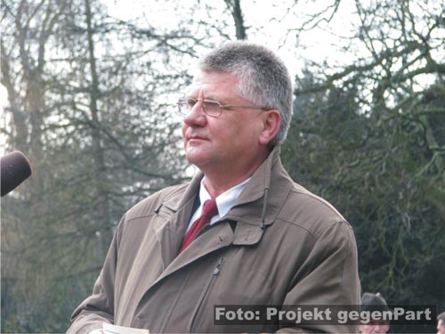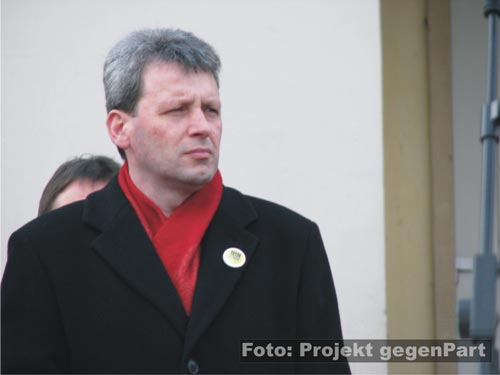 „Meistens ist es ein Tag, wo Männer Frauen gratulieren.“, beginnt Sachsen-Anhalts Innenminister Holger Hövelmann (SPD) in Anspielung auf den 08. März seinen Beitrag. Doch heute und hier in Dessau müsse sich die demokratisch verfasste Gesellschaft mit den „schrägen und menschenverachtenden Ansichten“ von Rechtsextremisten auseinandersetzten. Der SPD-Politiker betont ausdrücklich, dass er der Stadt Dessau dafür dankbar sei, alle rechtlichen Mittel ausgeschöpft zu haben, um den Naziaufmarsch möglichst zu verbieten: „Auch dazu gehört Courage.“ Letztlich müsse man aber akzeptieren, dass das Grundrecht auf Versammlungsfreiheit „über unser alle moralischen Bedenken stehe“. Angesichts der doch recht wenigen DessauerInnen, die den Weg zur Kundgebung fanden, ist der Minister leicht konsterniert: „Ich bin ein wenig erschrocken, wie wenig das Bewusstsein in der Gesamtbevölkerung verankert ist.“ Wenn nur jeder zehnte Einwohner der Stadt auf den Platz gekommen wäre, würden hier dreimal soviele Leute sein, übt sich der Minister in Rechenspielen. Das sei vor allem wichtig, um sich mit den Opfern rechter Gewalt zu solidarisieren: „Sie brauchen keine schweigende Mehrheit.“
