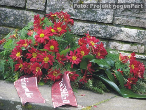 Anschließend begeben sich die Teilnehmer der Kundgebung auf einen ebenfalls vom Dessauer Bündnis gegen Rechtsextremismus organisierten Rundgang unter dem Motto: „Weg der Erinnerung und Mahnung“. Die erste Station liegt nur unweit vom Theater entfernt, im Stadtpark. Dort malträtierten Nazi-Schläger im Juni 2000 den Afrodeutschen Alberto Adriano so schwer, dass er wenige Tage später an seinen Verletzungen verstarb. Dieser Mord, begangen durch Neonazis, löste vor nunmehr fast 8 Jahren eine breite öffentliche Debatte über rassistische Gewalt und organisierten Rechtsextremismus in der Bundesrepublik aus. Razak Minhel, der Leiter des Multikulturellen Zentrums, erinnert mit eindrucksvollen Worten an diese grausame Tat: „Offensichtlich war den drei Jugendlichen Albertos Hautfarbe Grund genug, um ihn zu erschlagen.“ Inzwischen habe in der Stadt eine breite Diskussion stattgefunden aber es gebe immer noch Leute, die kein Problembewusstsein entwickelt hätten: „ Die nicht wahrhaben wollen, dass es Rechtsextremismus gibt und damit sind sie Verharmloser.“