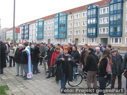 Apropos Nazis, die NPD marschierte tatsächlich durch die Stadt. An der vom Kreisgeschäftsführer Swen Behrendt angemeldeten Demonstration nahmen handgezählte 110 Neonazis, vorwiegend aus regionalen Kameradschaftsstrukturen, teil. Aber auch überregional relevante Neonazikader wie Enrico Marx aus Sotterhausen und der Magdeburger JN-Aktivist Andreas Biere. Damit blieb die neonazistische Kampfpartei weit hinter ihren eigenen Mobilisierungserwartungen zurück. Ein Trost ist das freilich nicht und schon gar kein Grund für eine Entwarnung.