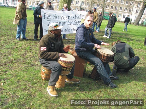 Keine Punkrock-Klänge und auch nicht die obligatorischen Liedermacher-Einlagen, beschallten bereits am frühen Morgen den Bahnhofsvorplatz. Dort hatte sich der Dessauer beatclub (mehr dazu hier...) mit großen Boxen und seiner Kundgebung „beats gegen Rechts“ in Stellung gebracht. Obwohl sich zunächst nur eine Handvoll Leute für die Mucke aus der Konserve interessierten, tat das der Stimmung keinen Abbruch. Das lag vor allem an der recht originellen und ungewöhnlichen Musikauswahl. Da wechselten sich Songs von den Beatles munter mit dem Udo Jürgens Gassenhauer „Zeig mir ein Platz an der Sonne“ ab und elektronische Tanzmusik leitete die nächste EBM-Runde ein. Wenig später wird der Platz schon wieder mit „Yeah, Yeah, Yeah“ gerockt. „Man ist immer wieder gespannt, was als nächstes kommt.“, kommentiert ein Passant das Programm. Die einzigen, die sich über dieses wahrhaft kosmopolitische Gesamtarrangement ärgern dürften, sind die anreisenden NPD-Anhänger und Rechtsextremisten. Diese treffen sich zu diesem Zeitpunkt gerade in Hörweite am Westausgang des Hauptbahnhofes.