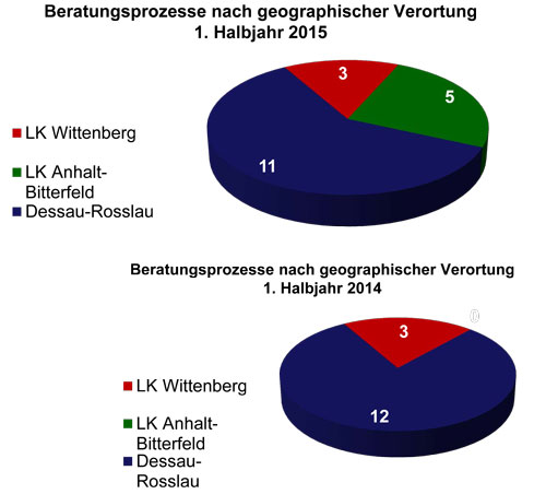 Bilanz des Mobilen Beratungsteams gegen RechtsextremismusDen Schwerpunkt der Beratungsanlässe bildeten im 1. Halbjahr 2015 eindeutig rechtsextreme Ereignislagen im öffentlichen Raum, dabei fallen insbesondere Demonstrationen und Kundgebungen der extrem rechten Szene in Dessau-Roßlau und der Stadt Bitterfeld-Wolfen (LK Anhalt Bitterfeld) ins Gewicht.