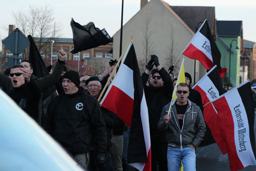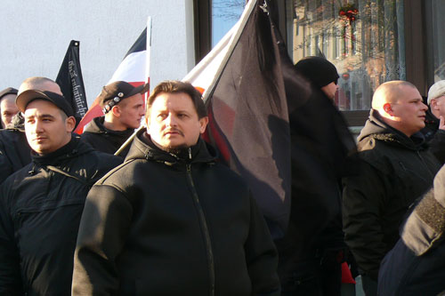 Dazu passend mobilisierte zur Demonstration auch hauptsächlich das neonazistische Klientel der Region, wie die "Brigade Bitterfeld" (mehr dazu hier...), die "Freien Nationalisten Wittenberg" (mehr dazu hier...) und die NPD (mehr dazu hier...). So waren unter den rund 100 Teilnehmenden bekannte extrem Rechte Akteure wie Matthias K., Ringo T. (mehr dazu hier...), Tony W. und Mario Albrecht (mehr dazu hier...) zu finden.